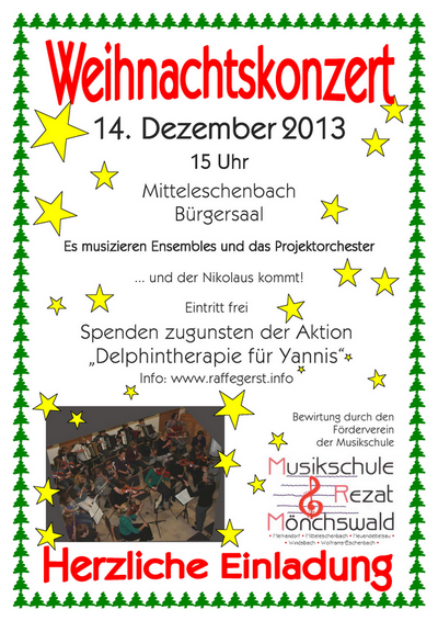 Weihnachtskonzert der Musikschule Rezat-Mönchswald Vielen herzlichen Dank für diese tolle Idee --> Zeitungsbericht in der Fränkischen Landeszeitung