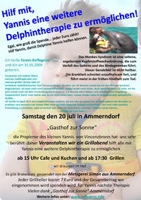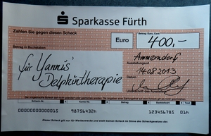Kinotrailer & Spendendose im Kino Großhabersdorf ![]() Familie Jordan brachte Yannis auf die Kinoleinwand. Im Vorspann bekamen alle Zuschauer einen kleinen Einblick in Yannis' letzte Delphintherapie. Im Foyer hatten die Kinobesucher die Möglichkeit, Yannis etwas in die Spendendose zu stecken.