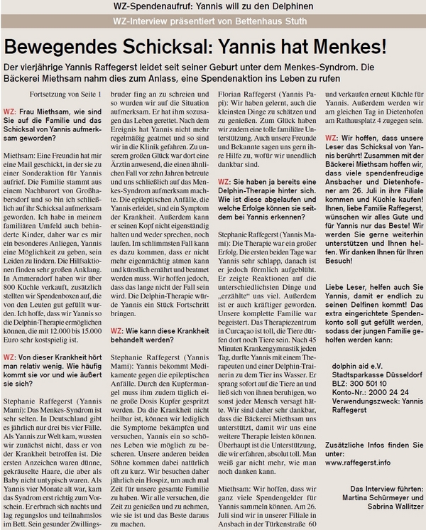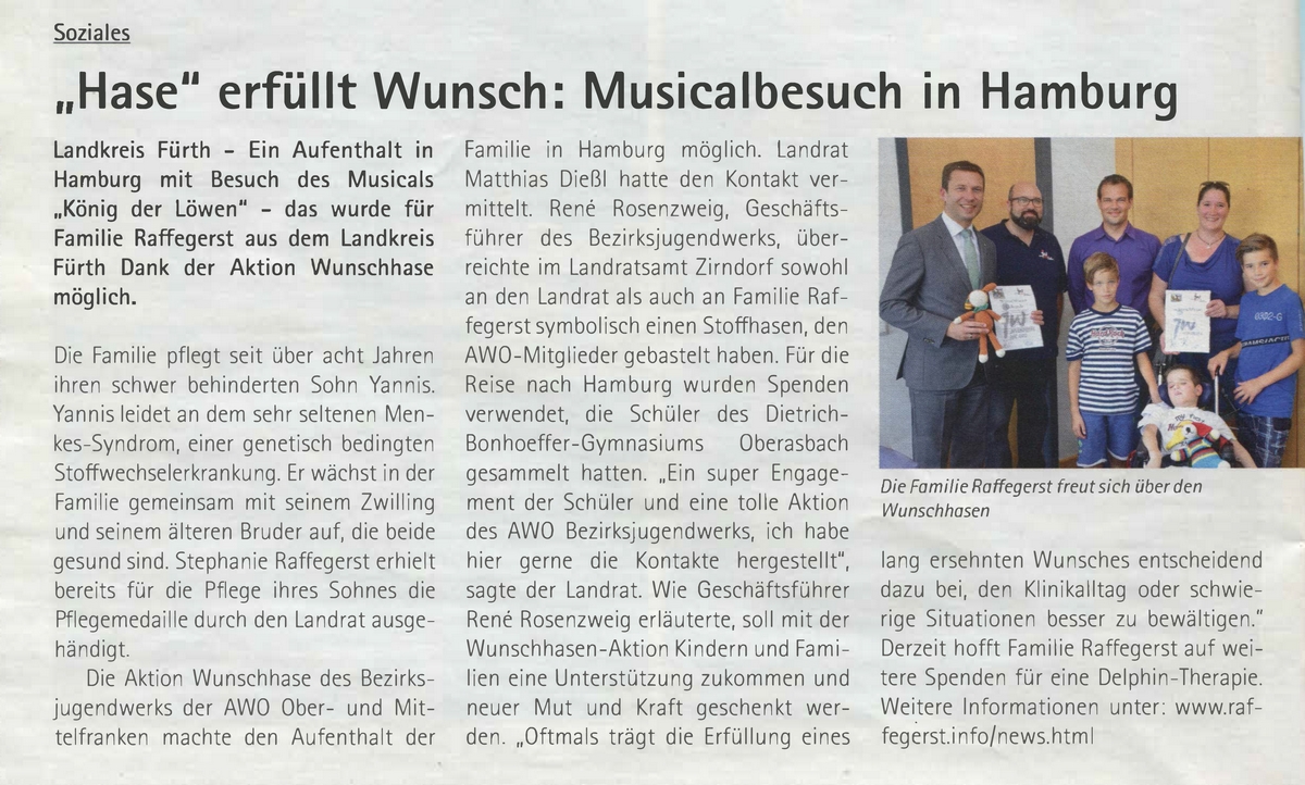 Interview/ Bericht in der Ansbacher WochenZeitung vom 20.07.2013